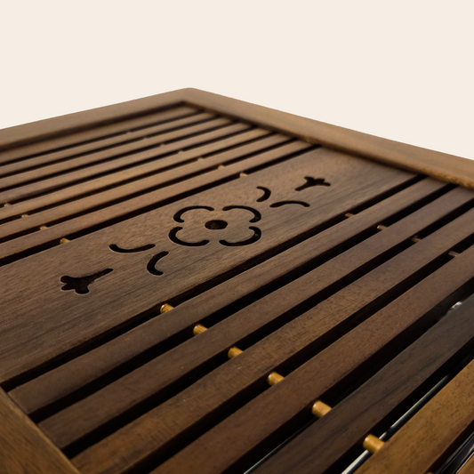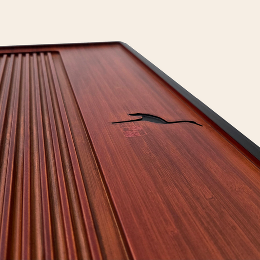 Чайная доска "Два феникса" 44х31 см из дерева венге, с металлическим поддоном